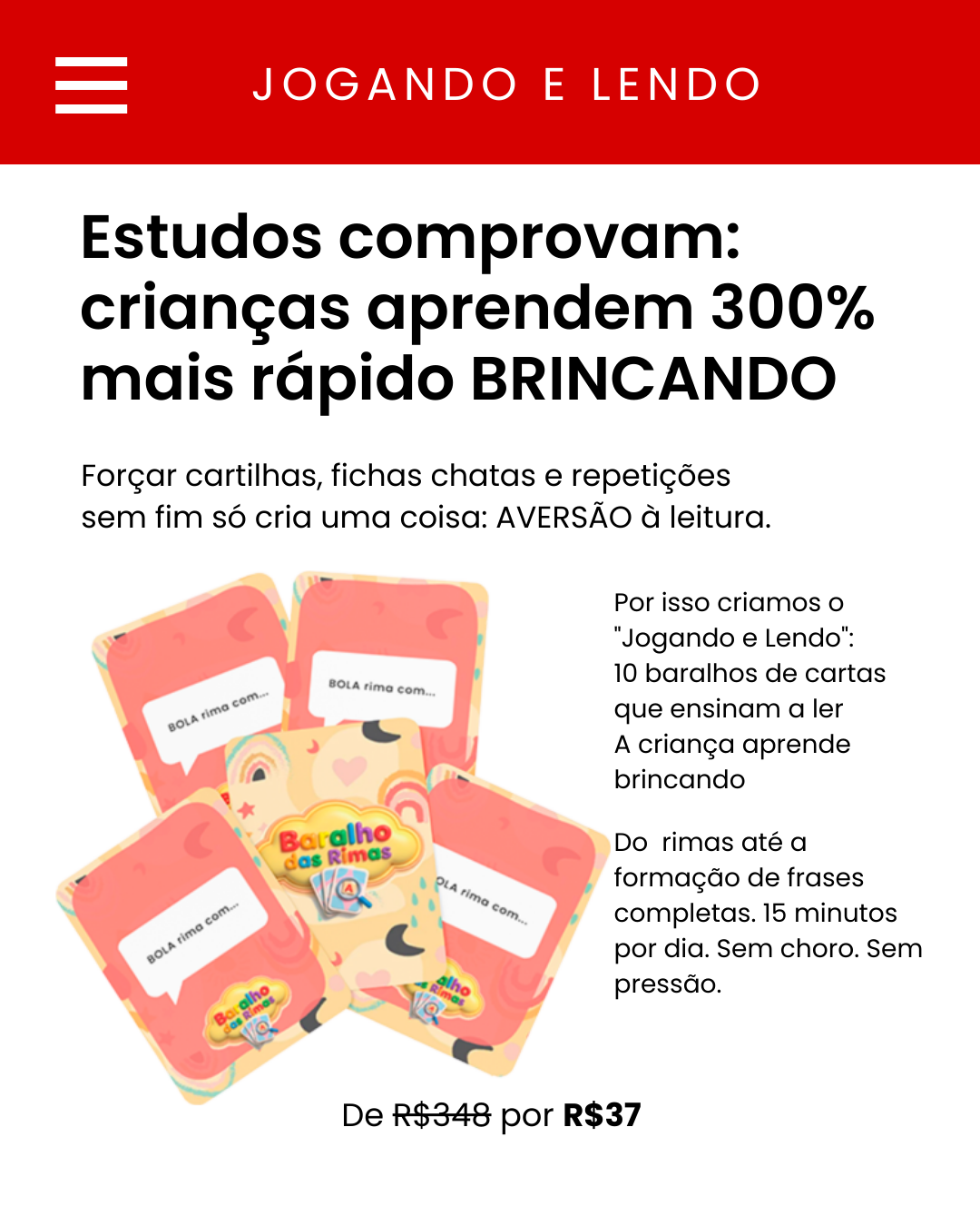 HOJE: GRÁTIS! Por isso criamos o "Jogando e Lendo": baralhos de cartas que ensinam a ler A criança aprende brincando